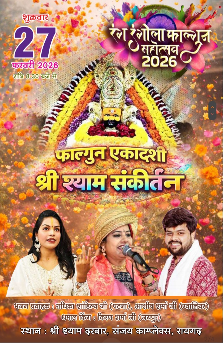 आज से श्री श्याम मंदिर में तीन दिवसीय रंग रंगीला फागन महोत्सव का यादगार आयोजन