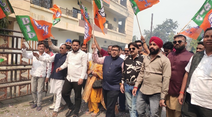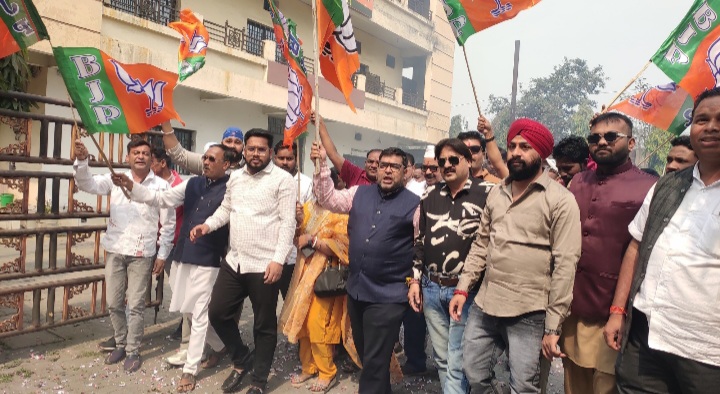 2026-27 के बजट की खुशी में भाजपा कार्यालय में मनाया गया जश्न