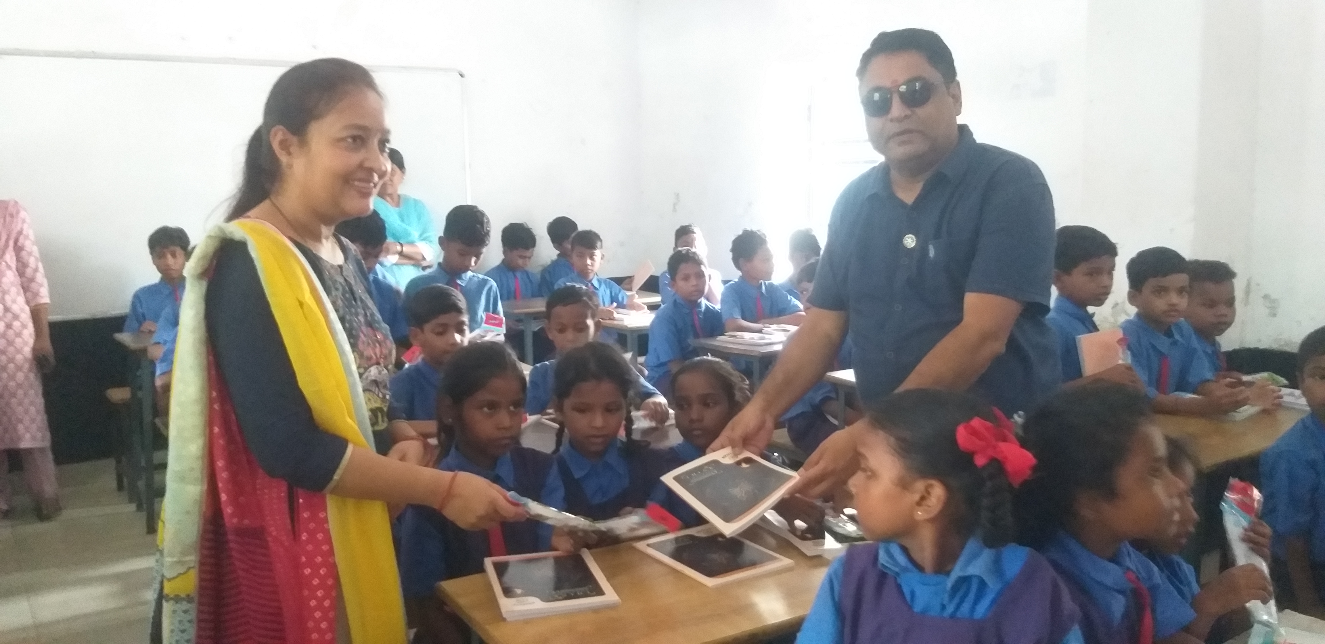दिया गया स्कूल संस्था व बच्चों को उपहार – – रोटरी क्लब ऑफ रायगढ़ ग्रेटर के सभी सदस्यों ने अपने जनहित सेवा कार्यक्रम के अन्तर्गत आज इंदिरा गांधी प्राथमिक शाला को दो फैन व बच्चों को मध्यान्ह भोजन में सुविधा के लिए चालीस स्टील की थाली व स्कूली बच्चों को स्कूल की जरुरतमंद सामाग्री के अंतर्गत 360 कॉपियां, पेन व हाइजिन किट का उपहार के अतिरिक्त उनको बिस्किट भी उपहार में दिए। वहीं रोटरी क्लब के इस नेक कार्य से स्कूल स्टॉफ के सभी सदस्यगण बेहद खुश हुए। वहीं संकुल समन्वयक जगतराम जाफरी व प्राथमिक प्रधान पाठक तिलक राम पटेल, चंद्र प्रभ राठौर, रश्मि केरकेट्टा माध्यमिक शाला प्रधान पाठक जाफरी सर व टीचर आशा किरण साहू, शशि किरण साहू सहित सभी सदस्यों ने रोटरी क्लब ऑफ रायगढ़ ग्रेटर के इस नेक पहल की सराहना करते हुए आभार प्रकट किया।