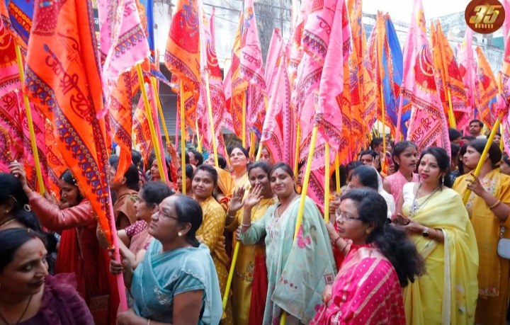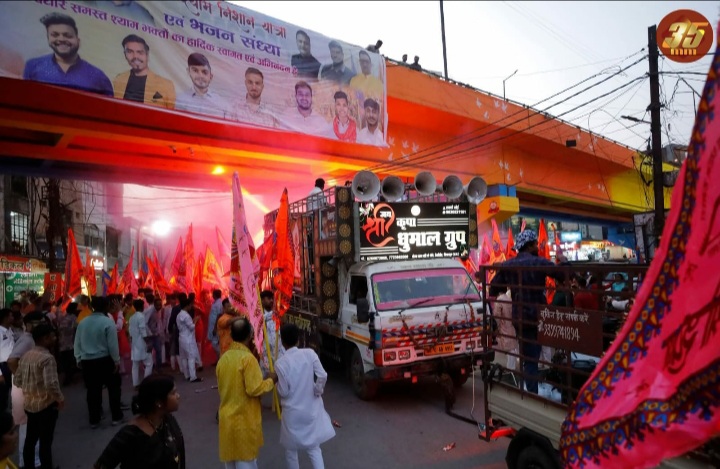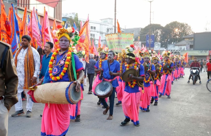 रायगढ़ – – शहर की सुप्रसिद्ध धार्मिक श्री श्याम लखदातार सेवा समिति के सभी श्रद्धालुओं की पहल से विगत चार वर्षों से भव्यता के साथ फागुन उत्सव मनाया जा रहा है। धार्मिक इस परंपरा को बरकरार रखते हुए समिति के सभी सदस्यों ने शहर में दो दिवसीय फागुन उत्सव का यादगार आयोजन कृतार्थ – 4 किया गया व पहले दिन विगत 12 फरवरी को मनभावन झांकी, करमा पार्टी, धमाल पार्टी, मधुर भजन व ऐतिहासिक निशान यात्रा निकाली और समूचा अंचल बाबा श्री श्याम के मधुर जयकारे से गुंजायमान हो गया।वहीं शहर की गलियाँ खुशी के इस उत्सव के बेशुमार रंगों से रंगीन हो गई।
