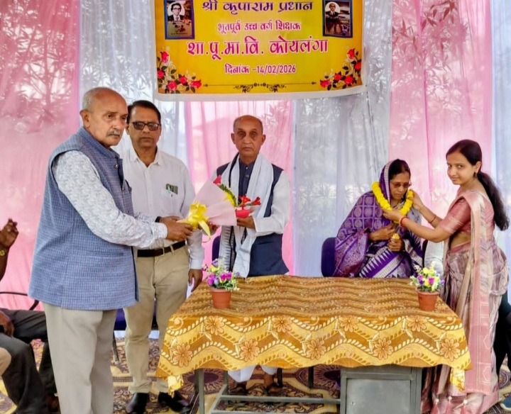 रायगढ़ – – शा पूर्व मा वि कोयलंगा (संकुल शा उ मा वि जामगांव रायगढ़) से सेवानिवृत्त शिक्षक श्री कृपाराम प्रधान का विदाई समारोह 14 फरवरी 2026 को ग्रामीण पालकों , छात्र छात्राओं और संकुल शिक्षकों की उपस्थिति में उल्लासपूर्ण वातावरण में दोपहर भोज के साथ सम्पन्न हुआ।उन्होंने 43 वर्ष 3 माह और 25 दिनों तक बतौर शिक्षक अपनी सेवाएं देकर बच्चों को मार्गदर्शन दिया।