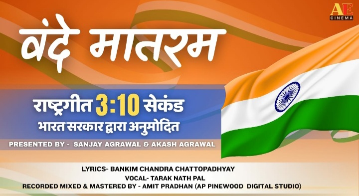 रायगढ़ – – केंद्र सरकार द्वारा राष्ट्रगीत ‘वन्दे मातरम्’ को लेकर लिए गए ऐतिहासिक निर्णय के बाद छत्तीसगढ़ में देशभक्ति का एक नया अध्याय शुरू हो गया है। भारत सरकार द्वारा अनुमोदित 3 मिनट 10 सेकंड की तय सीमा वाले राष्ट्रगीत के ऑडियो को ए ई सिनेमा ने अपने यूट्यूब चैनल पर जारी किया है, जिसका भव्य विमोचन मुख्यमंत्री विष्णु देव साय द्वारा रायगढ़ प्रवास के दौरान किया गया।
