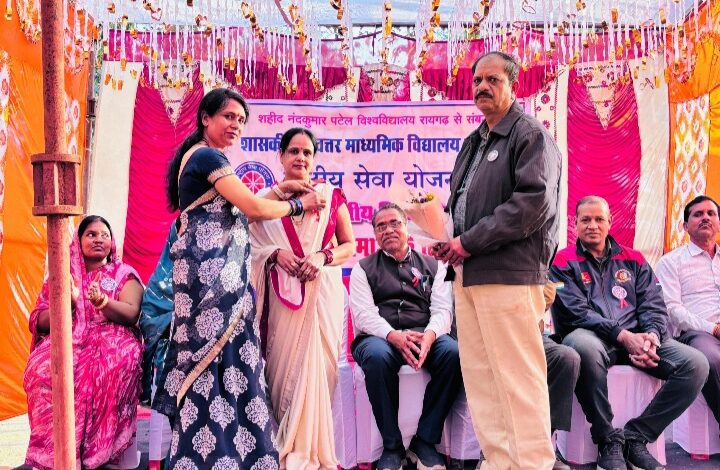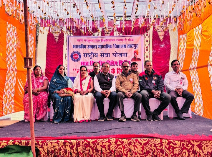 एनएसएस सर्वांगीण विकास का सशक्त मंच – अंजु पटेल रायगढ़ – – शहीद नंदकुमार पटेल विश्वविद्यालय रायगढ़ से संबद्ध शासकीय उच्चतर माध्यमिक विद्यालय तारापुर का “नशा मुक्त समाज के लिए युवा” विषय पर केन्द्रीत राष्ट्रीय सेवा योजना सात दिवसीय विशेष शिविर का शुभारंभ जनपद सदस्य द्वय अंजु पटेल तारापुर एवं श्रीमती राजकुमारी पटेल बालमगोड़ा के मुख्य आतिथ्य तथा सरपंच गुलापी सिदार की अध्यक्षता में तथा संस्था के प्राचार्य हितेन्द्र सिंह पटेल एनसीसी आफीसर व्याख्याता किरण कुमार पटेल उदयसिंह पटेल प्रधान पाठक गिरिजा नायक, युवा सामाजिक कार्यकर्ता बीरू घनश्याम साव के साथ ग्राम वासियों की विशिष्ट उपस्थिति में सम्पन्न हुआ। शिविर का शुभारंभ ज्ञान कला व ज्ञान की देवी माँ सरस्वती एवं एनएसएस के प्रतिक पुरुष स्वामी विवेकानंद जी की पूजा अर्चना के साथ किया गया तत्पश्चात सभी सदस्यों को रासेयो बैच एवं गुलदस्ता द्वारा रासेयो परिवार की ओर से स्वागत किया गया । एवं स्वागत उद्बोधन के साथ शिविर के गतिविधियों की जानकारी विद्यालय के वरिष्ठ व्याख्याता एक रासेयो के जिला संगठक भोजराम पटेल द्वारा दिया गया । प्राचार्य हितेन्द्र सिंह पटेल द्वारा एनएसएस के बैज व प्रतीक चिन्ह की व्याख्या कर शिविर सफलता की कामना की । सामाजिक कार्यकर्ता एवं पूर्व भाजपा मंडल अध्यक्ष लोचन प्रसाद पटेल ने तारापुर हायर सेकेण्डरी स्कूल की उपलब्धियों और गतिविधियों की सराहना करते हुए राष्ट्रीय सेवा योजना विशेष शिविर के सफलता की शुभकामना प्रदान की वहीं मुख्य अतिथि अंजू पटेल ने कहा कि एनएसस सर्वांगीण विकास का उत्कृष्ठ मंच है हमारे ग्राम में यह कैम्प एक नई प्रेरणा व नशा मुक्ति का संदेश देगा इसी क्रम में राजकुमारी कन्हैया पटेल तथा सरपंच गुलापी सिदार ने भी अपना अपना संक्षिप्त उद्बोधन देते हुए विशेष शिविर के सफलता की शुभकामना प्रदान की । युवा नेता घनश्याम साव ने अपने उद्बोधन में आश्वस्थ किया कि राष्ट्रीय सेवा योजना के शिविर को सफल बनाने हम सभी का सहयोग रहेगा एवं आप सभी शिविरार्थी भी अपने दायित्वों का कुशलता से निर्वहन करें । एनसीसी आफिसर किरण कुमार पटेल ने अपने उद्बोधन के माध्यम से स्वयंसेवकों का उत्साहवर्धन किया । कार्यक्रम अधिकारी मंजू पटेल द्वारा कार्यक्रम का संचालन करते हुए सभी आगंतुकों का विशेष रूप से आभार व्यक्त करते हुए शुभारंभ कार्यक्रम के समापन की घोषणा की।