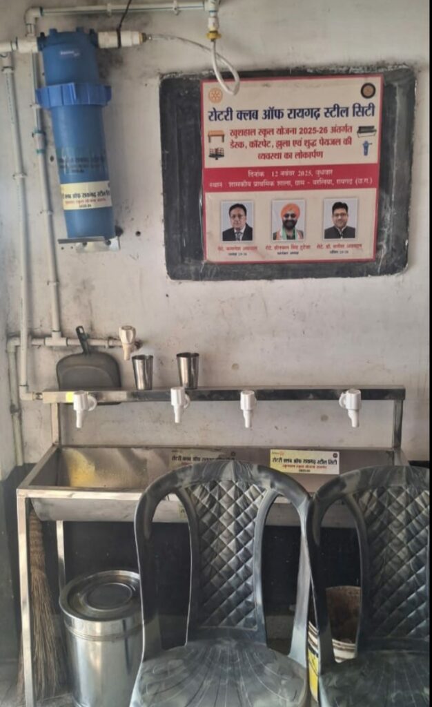 वहीं इस अवसर पर कार्यक्रम संयोजक पूर्व अध्यक्ष प्रीतपाल सिंह टूटेजा ने कहा कि आज का यह अवसर हमारे लिए बहुत ही हर्ष और गर्व का क्षण है। रोटरी क्लब ऑफ रायगढ़ स्टील सिटी की ओर से इस प्राइमरी स्कूल में डेस्क, कार्पेट, वॉटर फ़िल्टर, सिंक और झूला प्रदान किया जा रहा है। यह केवल वस्तुओं का वितरण नहीं, बल्कि हमारे बच्चों के उज्जवल भविष्य में एक सुंदर निवेश है।