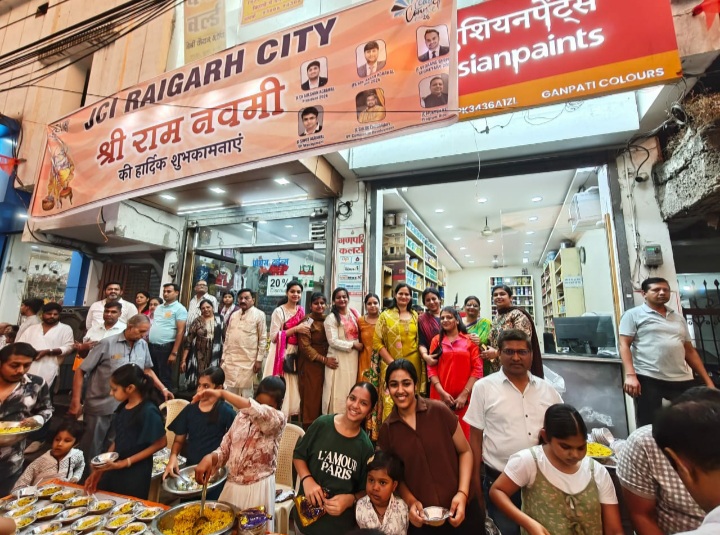 रायगढ़ – – मर्यादा पुरुषोत्तम भगवान श्री राम के जन्मोत्सव ‘रामनवमी’ के पावन पर्व पर जेसीआई रायगढ़ सिटी द्वारा सेवा का अनुपम उदाहरण प्रस्तुत किया गया। संस्था द्वारा शहर के रामनिवास टॉकीज रोड पर मुख्य मार्ग पर विशाल स्टाल लगाकर सभी राम भक्तों को श्रद्धापूर्वक प्रसाद का वितरण किया गया।चूँकि वर्तमान में गर्मी का प्रभाव बढ़ रहा है, इसे देखते हुए जेसीआई रायगढ़ सिटी ने संवेदनशीलता दिखाते हुए प्रसाद के साथ-साथ हजारों की संख्या में पोहा का वितरण भी किया।