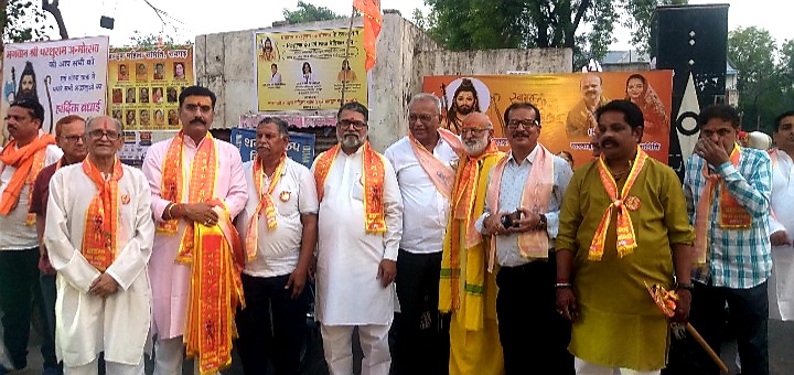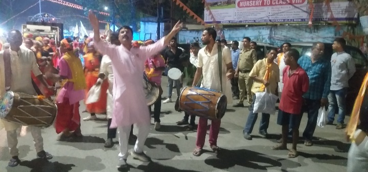 शाम को निकली शोभा यात्रा - - भगवान परशुराम मंदिर में सुबह पूजा - अर्चना व हवन यज्ञ के धार्मिक कार्यक्रम के बाद शहर के ब्राम्हण सेवा समिति व सर्व ब्राम्हण समाज के श्रद्धालुओं ने भव्य बाजे - गाजे आतिशबाजी व मधुर गीत के साथ रथ में भगवान परशुराम जी की प्रतिमा स्थापित कर जीवंत मनभावन झांकी डीजे , कर्मा पार्टी के साथ ऐतिहासिक शोभा यात्रा शाम पाँच बजे निकाली जो पूरे शहर का परिभ्रमण करते हुए पुनः मंदिर पहुँची। शोभा यात्रा में शामिल श्रद्धालुओं का जगह - जगह शहर के विभिन्न सामाजिक संस्थाओं के लोगों ने शीतल शरबत व नाश्ते से आत्मीय स्वागत किया व पूरा शहर भगवान परशुराम जी के जय जयकारे से गुंजायमान हो गया। वहीं रास्ते भर ब्राम्हण समाज के सैकड़ों लोग, ब्राह्मण समाज की युवतियां, महिलाएँ व युवा भी मधुर भजन गीतों के साथ भाव विभोर मस्त झूमे।